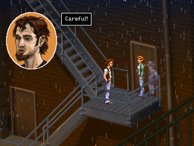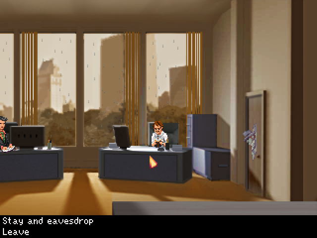 Una manera nueva de obtener información (aunque solo ocurre en esta localización) es hacer que Joey pegue la oreja y se quede un rato husmeando, escuchando conversaciones ajenas. Esta mecánica es muy sencilla porque obtienes en seguida lo que necesitas saber y no tiene mayor complicación, pero es algo que no se había usado todavía en estos juegos.