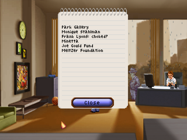 Conocemos nuevos personajes como Josie Parks (dueña de la galería), Claude (el pintor apadrinado por Josie), Monique Stahlman (quien nos pone en camino del caso principal del juego) o los hermanos Meltzer.