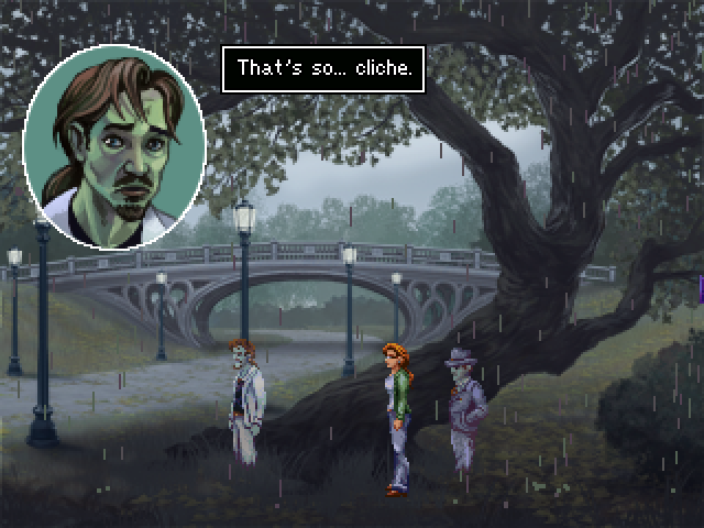 Rosa ya no es tan inexperta, parece que ya le ha cogido el truco a esto de liberar almas en pena. Joey sin embargo, se nota un poco más ácido que antes. Supongo que la aparición de antiguos conocidos en la trama contribuyen mucho a su humor un poco alterado, cosa que se nota sobre todo más hacia el final del juego. Los «chistes» de Rosa siguen siendo igual de malos, aunque no parece tener tantos problemas hablando con la gente.