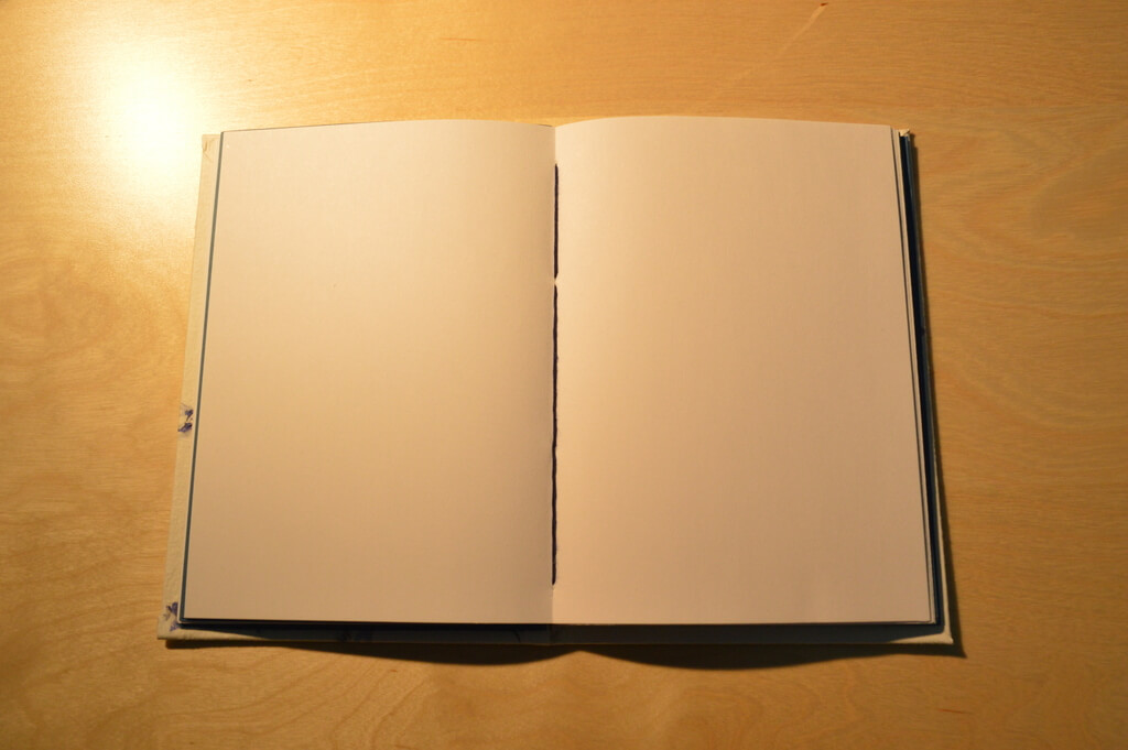 Como no podía ser de otra manera, la falta de práctica que todavía tengo en la encuadernación copta (unido al sueño que tenía cuando cosía los cuadernillos) hizo que metiera la pata en algunas cosas: